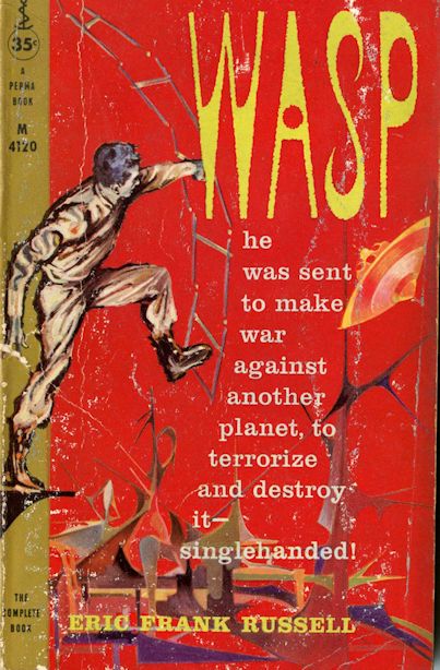 The spaceship stood silently beside the caves at the bottom of the cliff. Working like maniacs, the crew lowered thirty duralumin containers and stacked them so that their code numbers faced the light. That done, they scrambled up the ladder. An officer waved a hand at Mowry from the open lock. 'Give'em hell, sonny,' he called. And then the ship strted, waving the treetops in a mile-long lane of superheated air as it streaked off and vanished. In the cave were the thngs he might need for his lonely mission - to so disrupt and upset the planet all by himself that it could be successfully invaded.